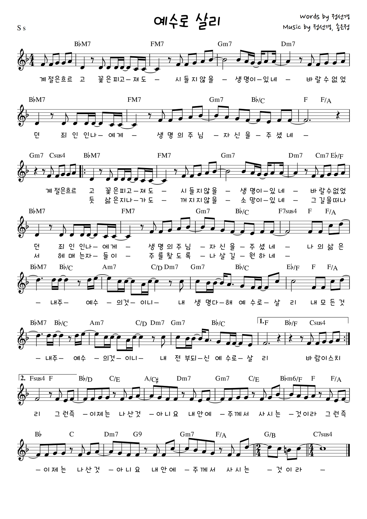 예수로 살리 - 악보,가사,영상 D, E, F KEY