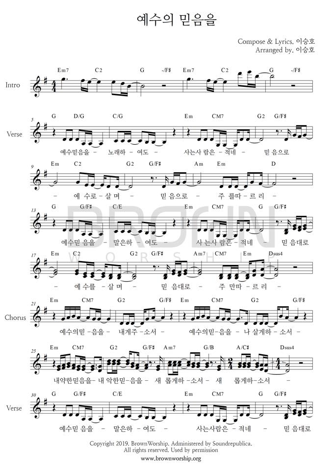 예수의 믿음을 - 악보,가사,영상 E KEY