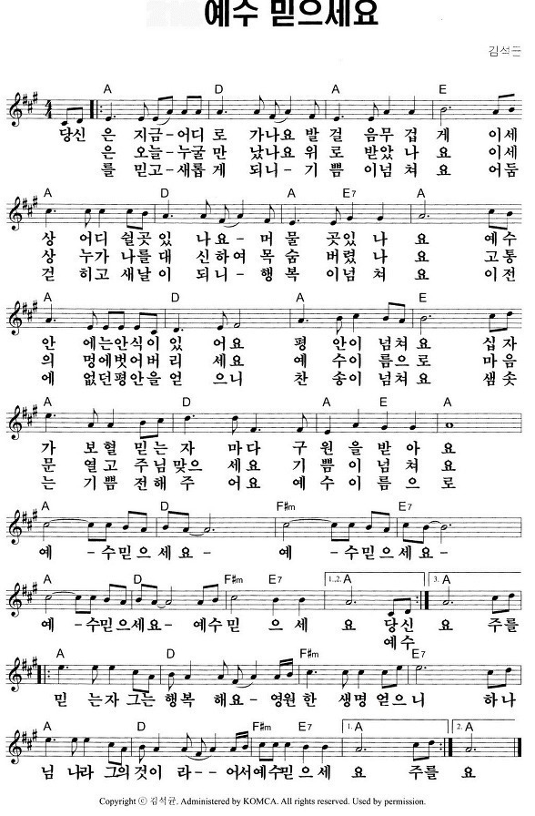 예수 믿으세요 - 악보,가사,영상 A KEY