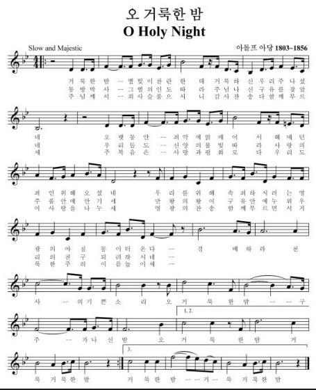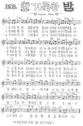 오거룩한밤 ( O Holy Night ) 악보,가사,영상 - C KEY