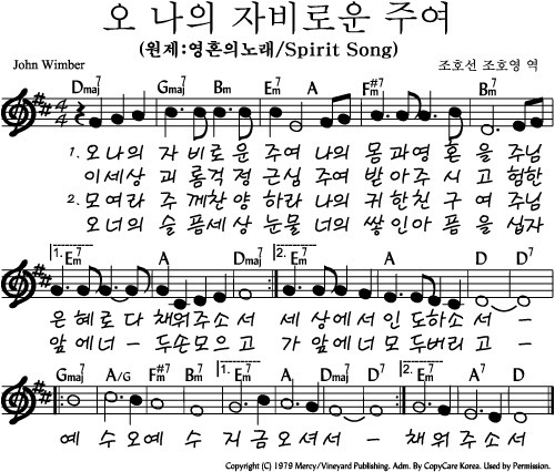 오 나의 자비로운 주여 (Spirit Song) - 악보,가사,영상 D KEY