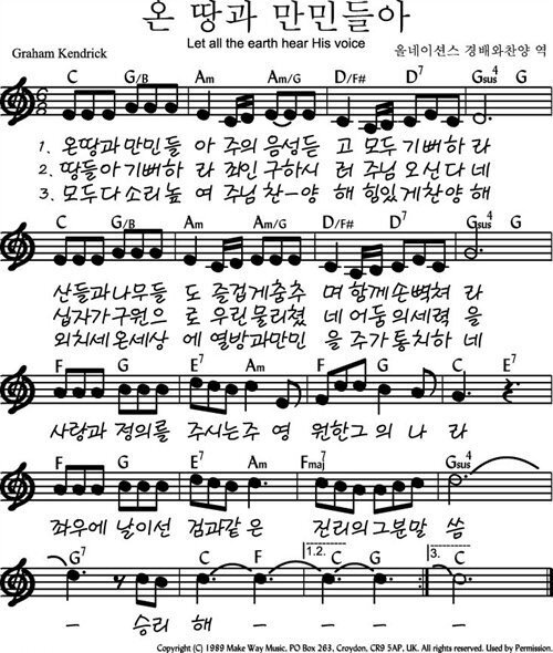 온 땅과 만민들아 - 악보,가사,영상 C KEY