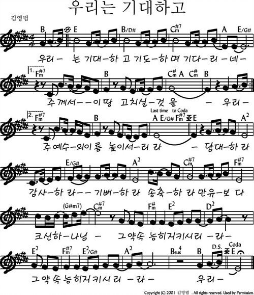 우리는 기대하고 기도하며 기다리네 - 악보,가사,영상 E KEY