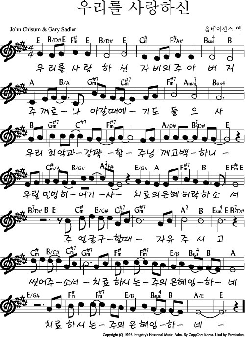 우리를 사랑하신 (Healing grace) - 악보,가사,영상 E KEY