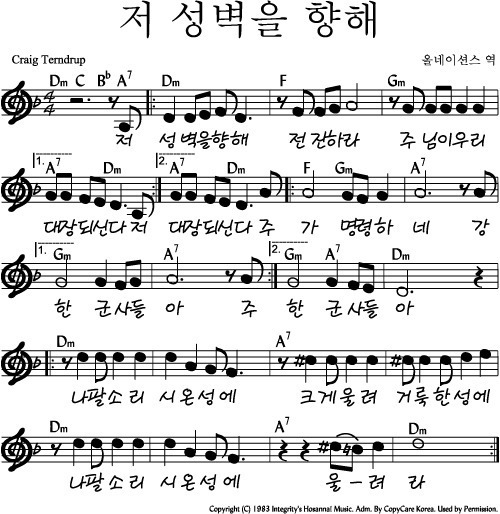 저 성벽을 향해 - 악보,가사,영상 D KEY