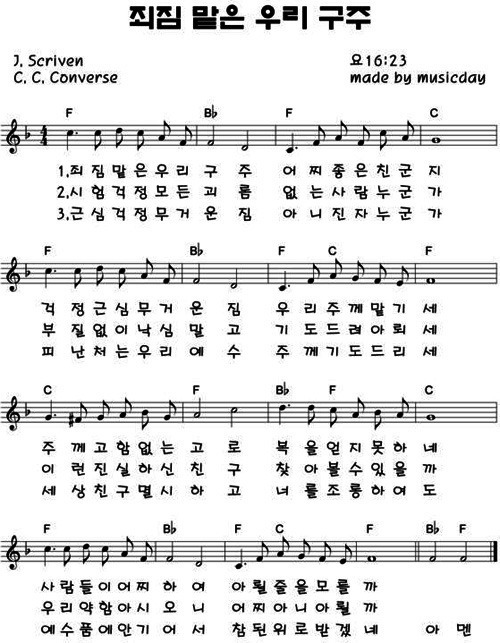죄짐 맡은 우리 구주 어찌 좋은 친군지