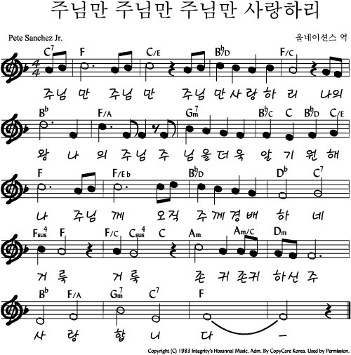 주님만 사랑하리 - 악보,가사,영상 F KEY