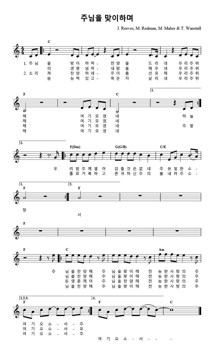 주님을 맞이하며- 악보 ,가사 ,영상 C KEY