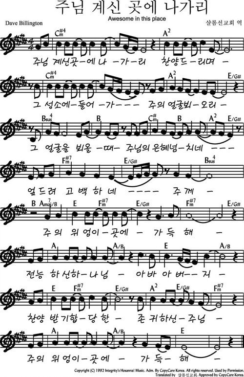 주님 계신 곳에 나가리 - 악보,가사,영상 E KEY