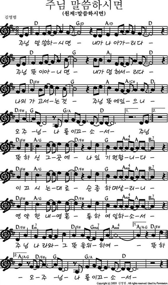 주님 말씀하시면 - 악보,가사,영상 D KEY