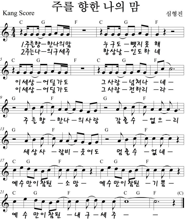 주를 향한 나의 맘 - 악보, 가사 ,영상 A ,Bb ,C KEY