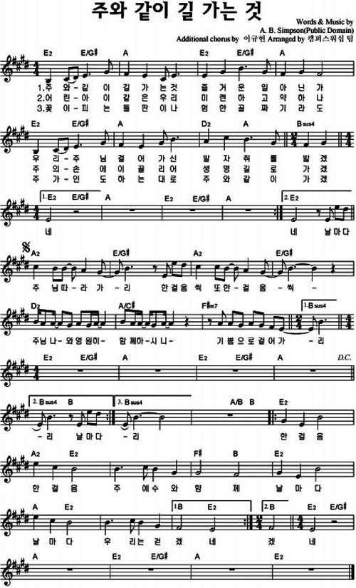 주와 같이 길 가는 것 - 악보,가사,영상 E KEY