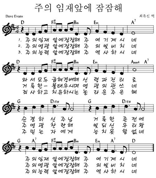 주의 임재 앞에 잠잠해 - 악보,가사,영상 D KEY