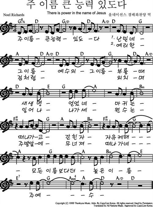 주이름 큰능력있도다 - 악보,가사,영상 D KEY