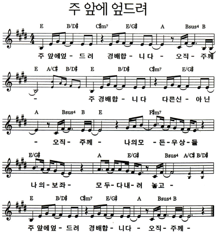 주 앞에 엎드려(I will bow to you) - 악보,가사,영상 E KEY