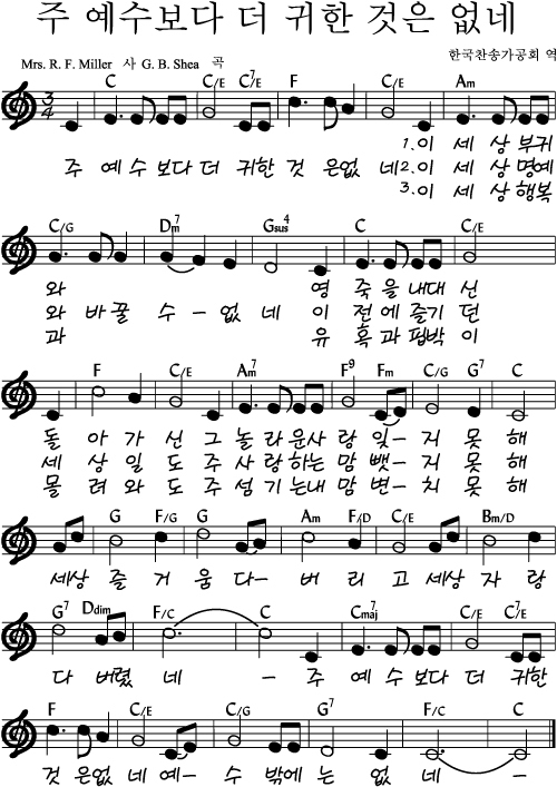 주 예수 보다 더 귀한 것은 없네 - 악보, 가사, 영상 C KEY
