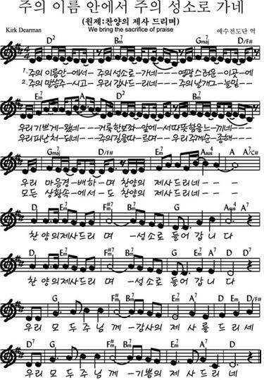 찬양의 제사 드리며 - 악보,가사,영상 D KEY