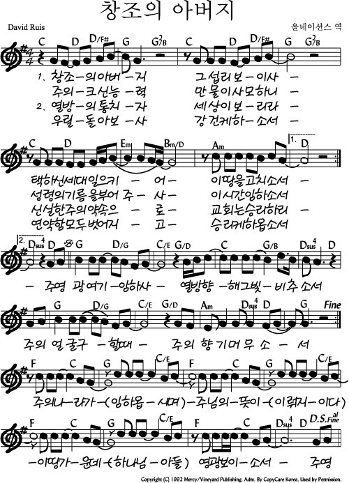 | 예수 나의 첫 사랑 되시네 - 악보,가사,영상 / A , C KEY (0) | 2023.09.11 |