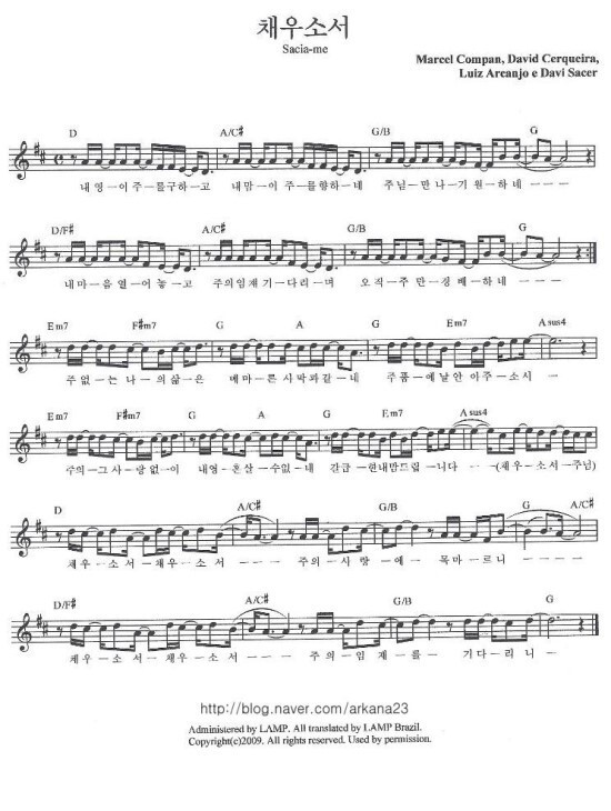 채우소서 - 악보,가사,영상 D KEY