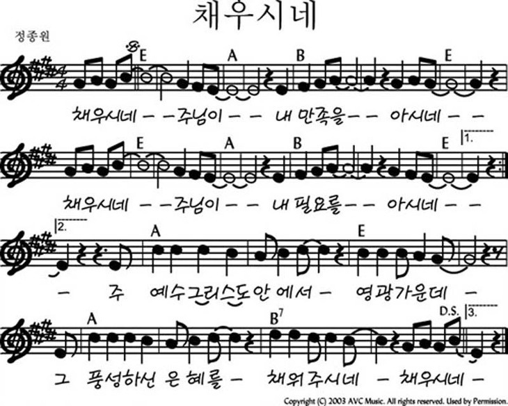 채우시네 주님이 - 악보,가사,영상 E KEY