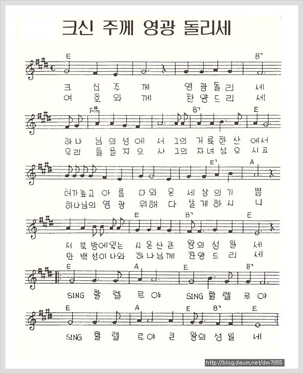 크신 주께 영광 돌리세 - 악보,가사,영상 E KEY