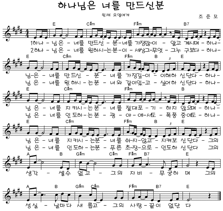 하나님은 너를 만드신 분 - 악보,가사,영상 E KEY