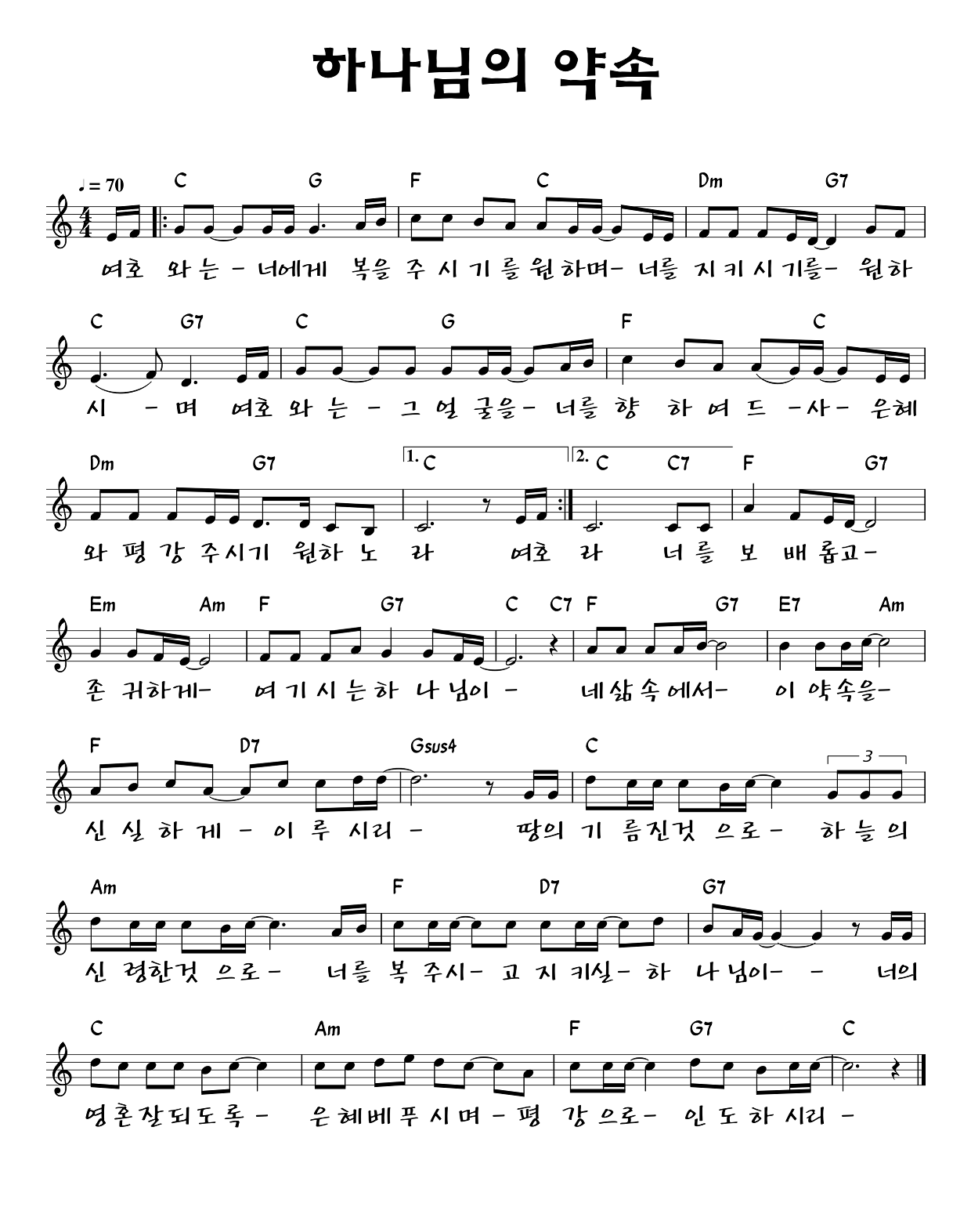 하나님의약속(옹기장이) 악보,영상,가사 - C KEY