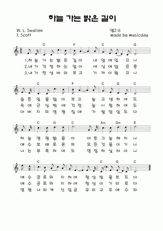 하늘 가는 밝은 길이 - 악보,가사,영상 C KEY