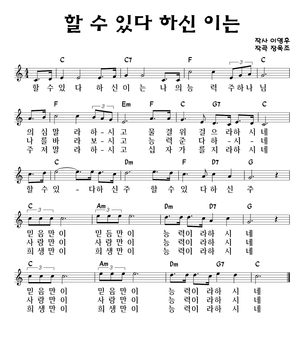 할 수 있다 하신 이는 - 악보, 가사 ,영상 C KEY