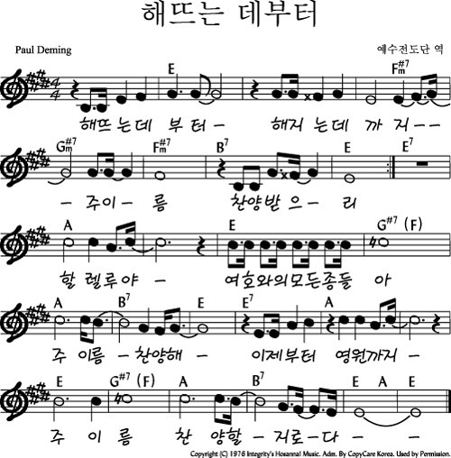 해 뜨는 데 부터 - 악보,가사,영상 E KEY