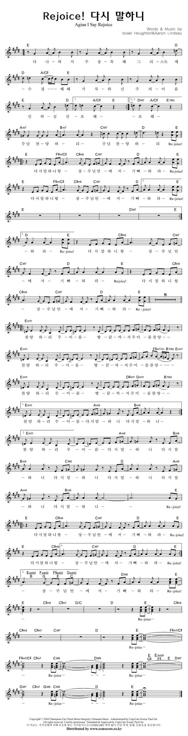 Rejoice 다시말하니 - 악보,가사,영상 E KEY