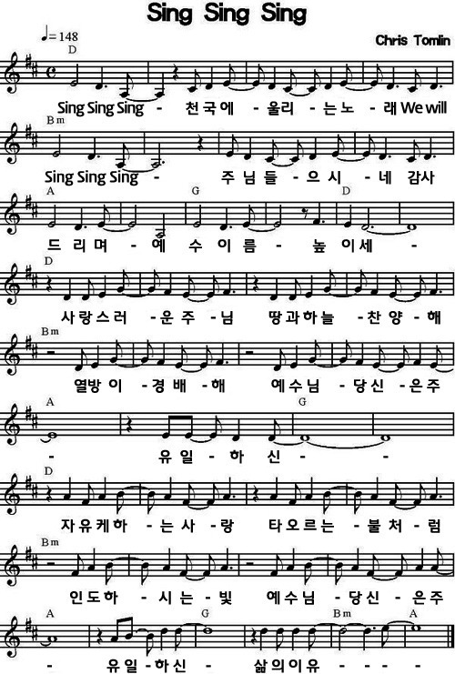 Sing Sing Sing(모두찬양해) - 악보,가사,영상 D KEY